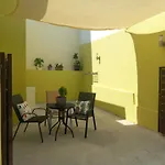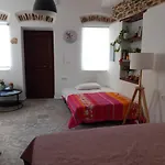 Die 1-Zimmer- Nisos Suite verfügt über eine sonnige Terrasse mit Blick auf die Straße und ist 15 Autominuten vom Flughafen Syros entfernt gelegen.